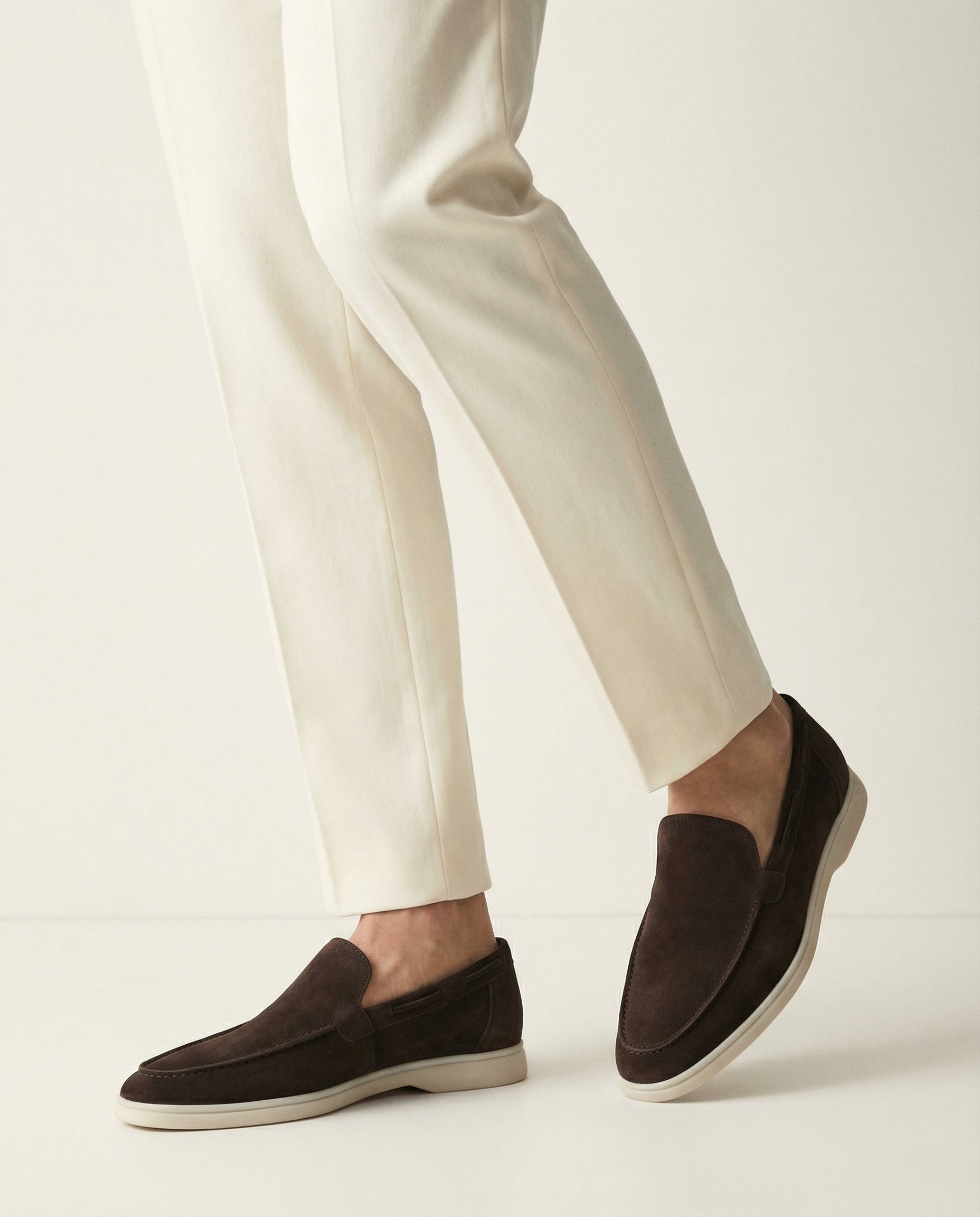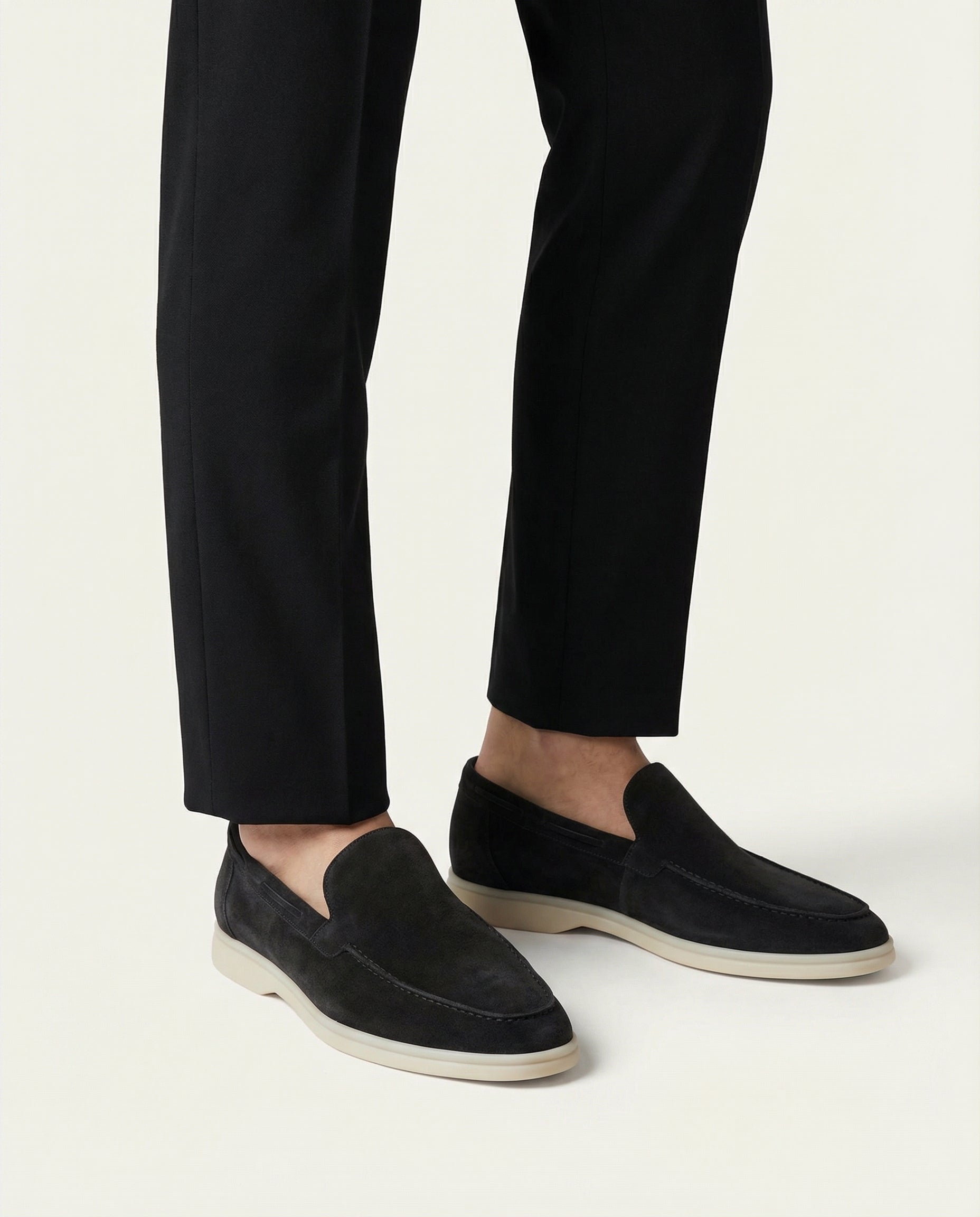 Crafted from supple suede and lined with smooth leather, The Mayfair loafer is a staple of understated luxury. With its clean silhouette, almond toe, and subtle tonal stitching, it transitions seamlessly from relaxed tailoring to off-duty refinement. A true reflection of Jarett London’s commitment to timeless design with a modern edge.
